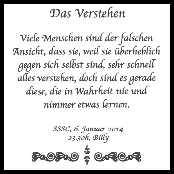 Billys Lehre der Wahrheit liegt seit langer Zeit vor. Sie ist sachlich dargelegt und richtet sich nicht an Glaubensannahmen, sondern an das eigenständige Denken des Menschen. Sie erläutert Zusammenhänge nüchtern und klar und überlässt dem Menschen die volle Verantwortung für sein Denken, Fühlen und Handeln.